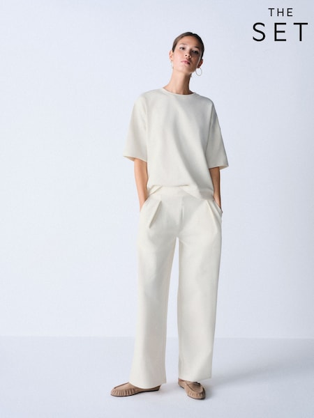 The Set 2 Piece Premium Heavyweight Shirt Sleeve T-Shirt and Pleated Jogger Set Cream