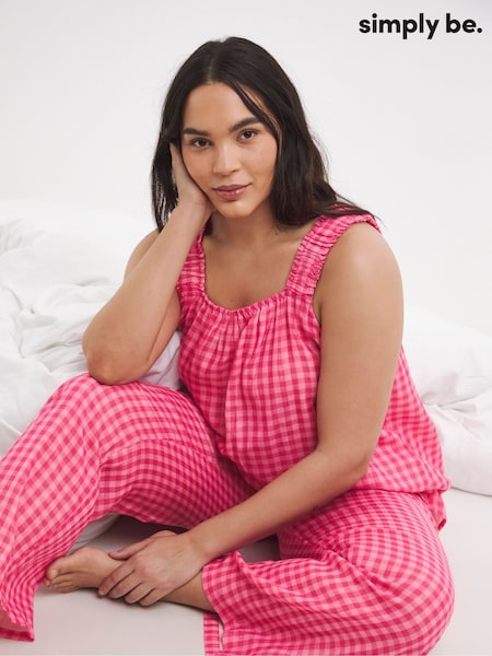 Simply Be Pink Gingham Cami Pyjama Set