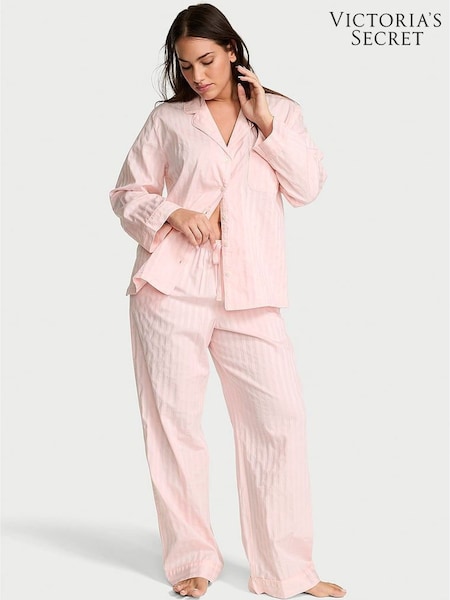 Victoria's Secret Pretty Blossom Pink Shadow Stripe Heritage Cotton Long Pyjama Set