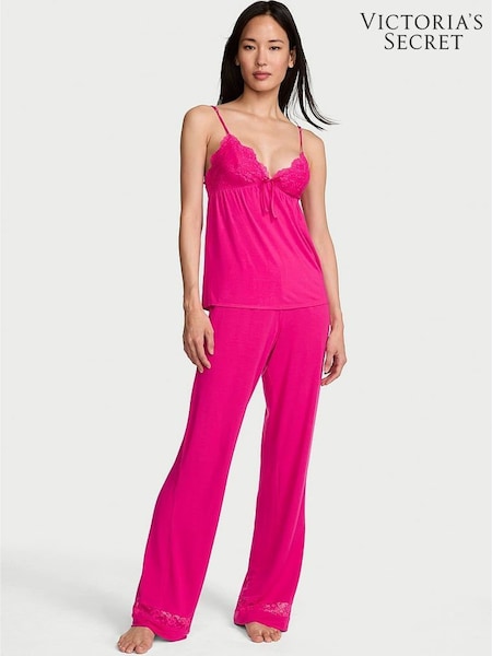 Victoria's Secret Pop Pink Lace Trim Modal Cami & Trousers Set
