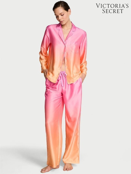 Victoria's Secret Pink/Orange Ombré Satin Long Pyjamas Set
