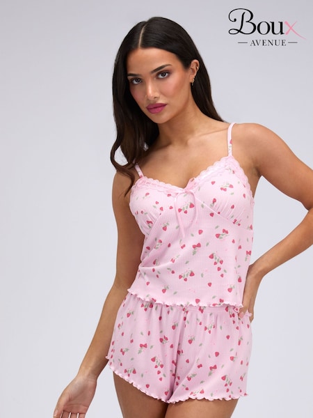 Boux Avenue Pink Strawberry Rib Cami Pyjamas Set