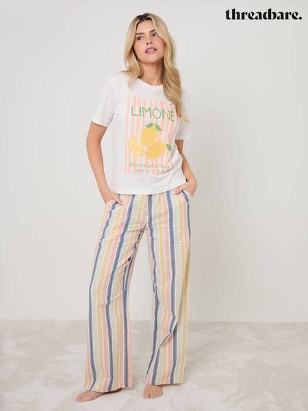 Threadbare Cream Lemonade Graphic Print Cotton Pyjamas Set