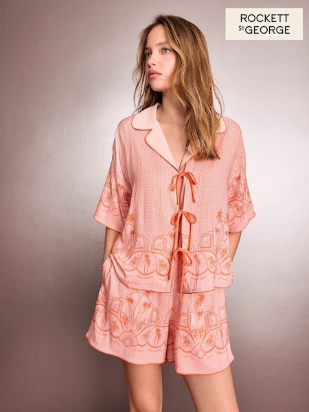 Rockett St George Pink/Orange Tie Front Pyjama Short Set