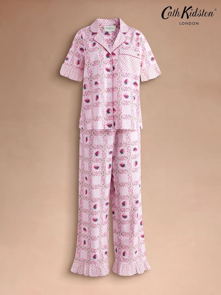 Cath Kidston Pink Spitefields Print Cotton Button Through Woven Pyjamas