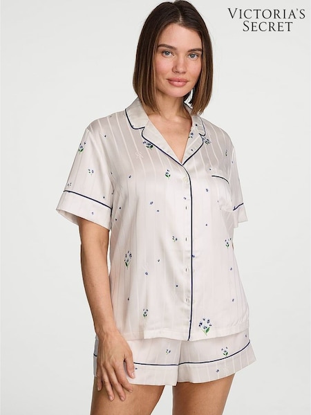 Victoria's Secret White & Celestial Blue Ditsy Floral Satin Short Pyjamas Set
