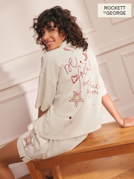 Rockett St George Cream Be Free Embroidered Button-Up 100% Cotton Shorts Set