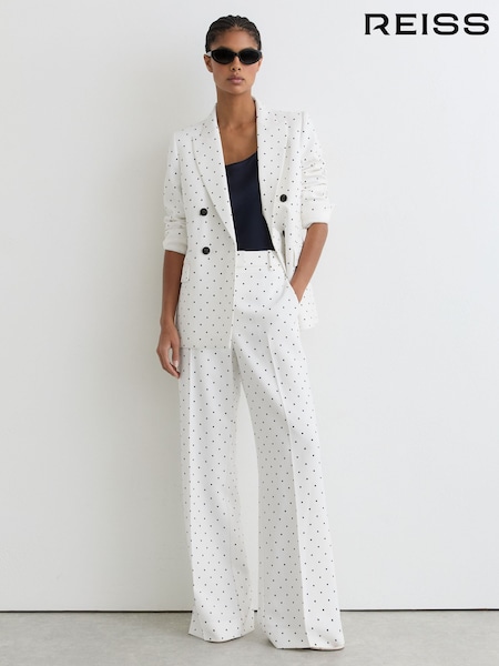 Reiss White/Navy Beatrix Petite Polka-Dot Wide-Leg Suit Trousers
