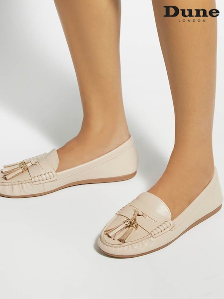Dune London Cream Standard Fit Leather Tassle Detail Soft Loafers
