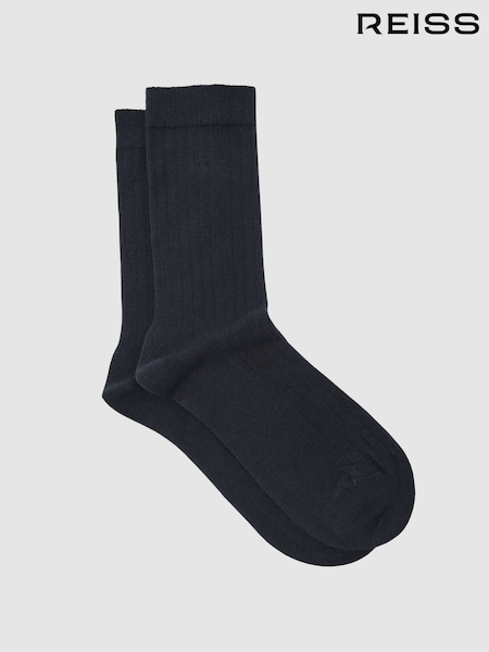 Reiss Navy Felicia Cotton Blend Ribbed Loafer Socks
