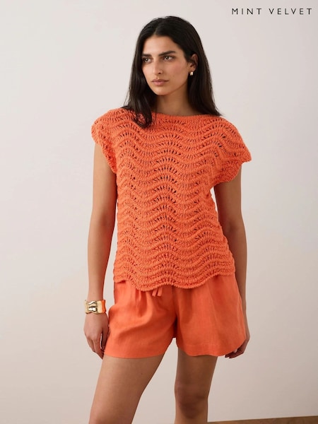 Mint Velvet Orange Metallic Crochet Knit Top