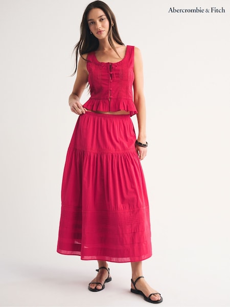Abercrombie & Fitch Red Embroidery Mini Skirt