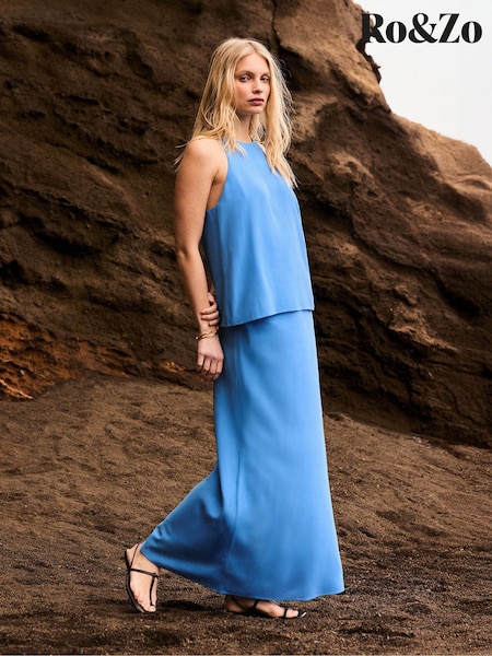 Ro&Zo Blue Linen Blend Bias Skirt
