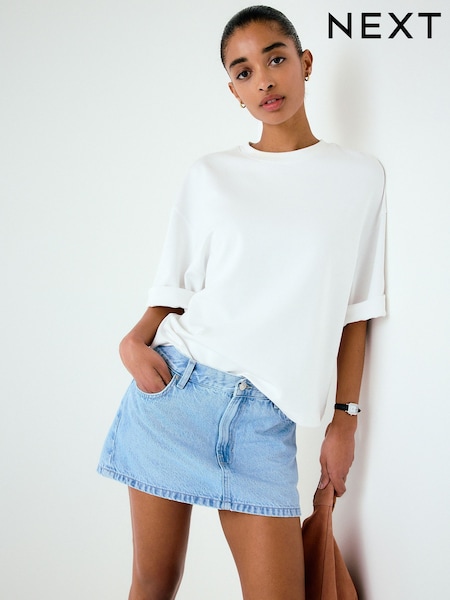 Friends Like These Mid Blue Split Front Denim Midi Skirt
