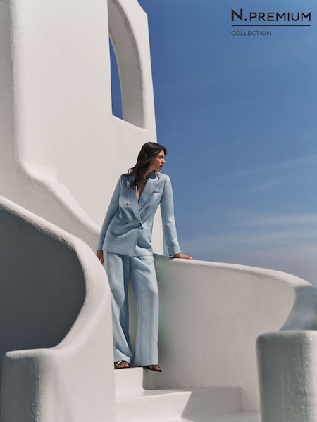 Pastel Blue N. Premium Linen Wide Leg Trousers