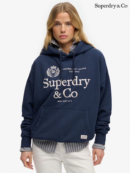Superdry Blue Luxe Casual Emb Relaxed Hoodie