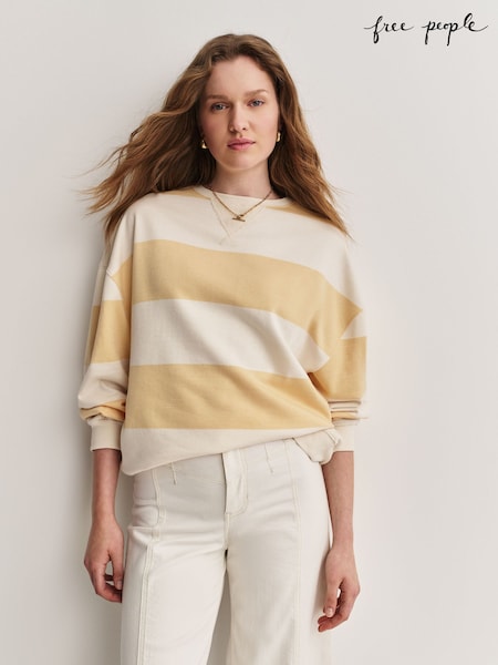 Free People Yellow Classic Stripe Crew Neck Wide Top