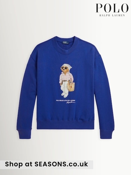 Polo Ralph Lauren Blue Crew Neck Polo Bear Cotton Sweatshirt