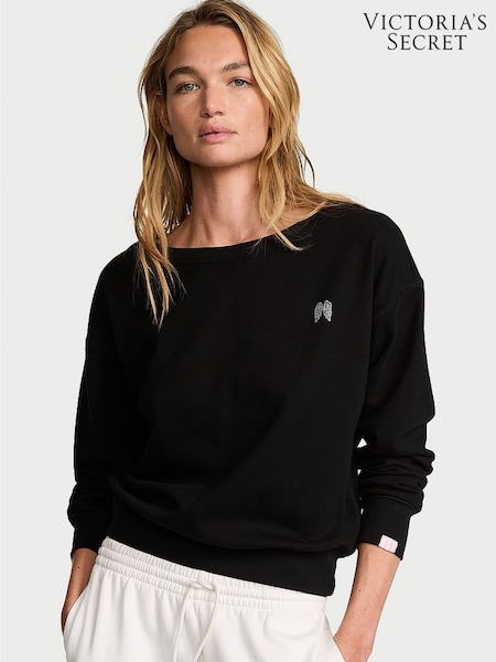 Victoria's Secret Black Terry Boatneck Sweatshirt