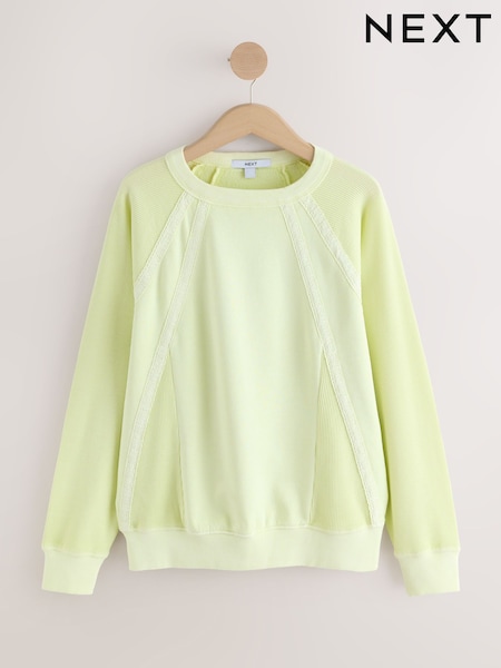 Lime Green Lace Trim Waffle Sleeve Lightweight Sweatshirt