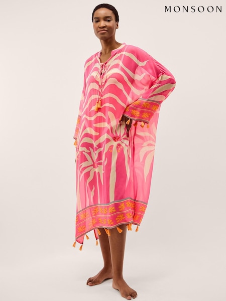 Monsoon Pink Paloma Palm Print Midi Kaftan