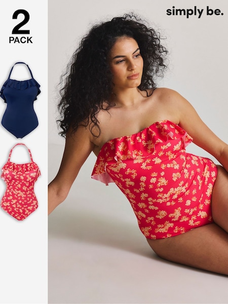 Simply Be Red Value Ruffle Swimsuits 2 Pack