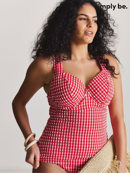 Simply Be Red Magisculpt Gingham Underwired Tankini Top