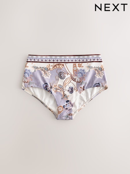 Cream/Blue Paisley High Waist Print Bikini Bottoms