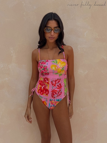 (1266)Our range of women's swimsuits offers a range of designs that will make the perfect addition to your swimwear collection – perfect for beach holidays, spa weekends and trips to the local pool. With a range of on-trend floral prints and tropical colourways, our shape-enhancing swimming costumes are designed to flatter your figure, while bandeau and ruffle styles are perfect for a touch of beach chic. Pair with a cover-up and sandals to complete the look.