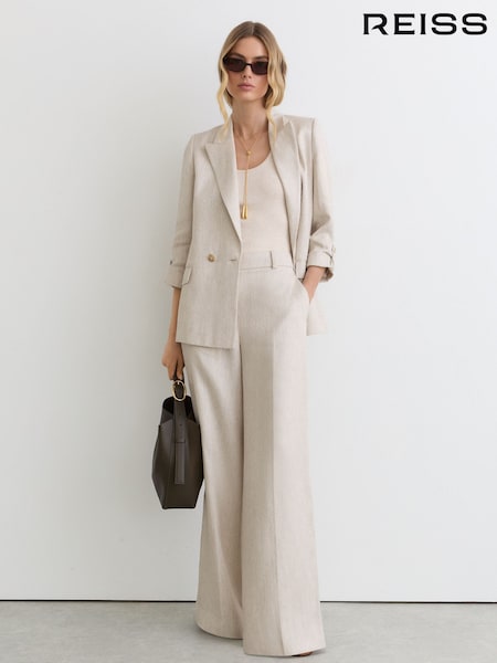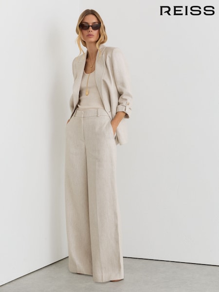 Neutral/Black Embroidered Side Detail Wide Leg Trousers