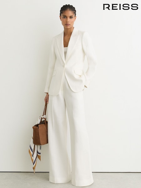 Reiss White Alyx Linen-Blend Wide-Leg Trousers