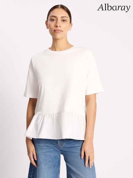 Albaray White Cotton Peplum Hem T-Shirt