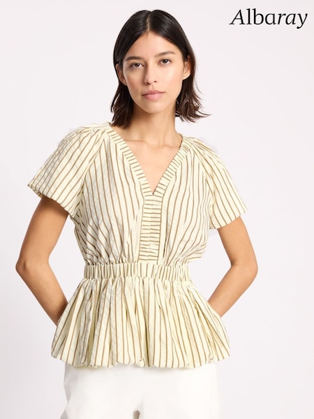 Albaray Natural Stripe Cotton Bubble Hem Top