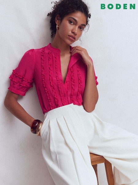 Boden Pink Silk Frill Detail Top