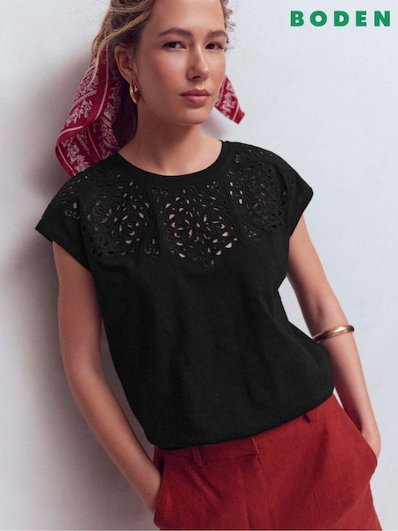 Boden Black Willow Broderie T-Shirt