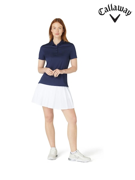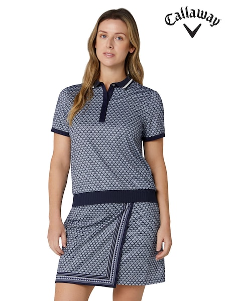 Callaway Golf Blue Scarf Geo Print Rib Collar Polo Shirt