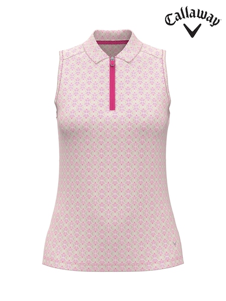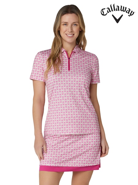 Callaway Golf Pink Deco Geo Print Mesh Insert Polo Shirt