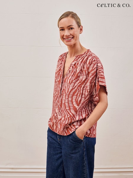 Celtic & Co. Red Button Through Top