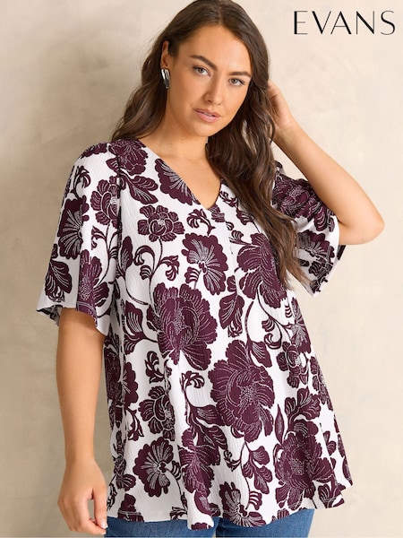 Evans Purple Short Sleeve Pleated Front Blouse