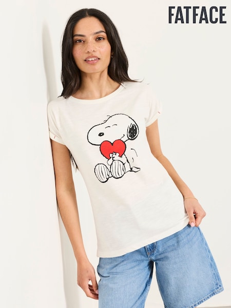 FatFace White Snoopy Heart Graphic T-Shirt