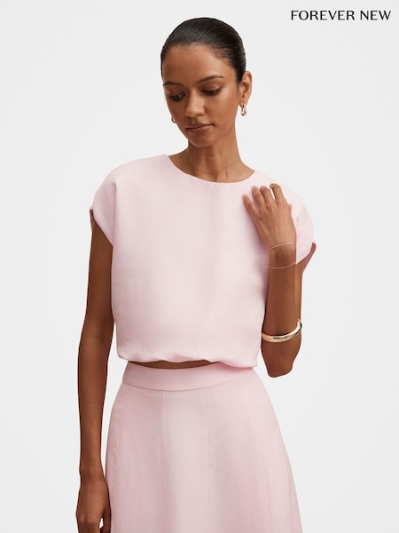 Forever New Pink Georgina Petite Bubble Hem Top Contains Linen