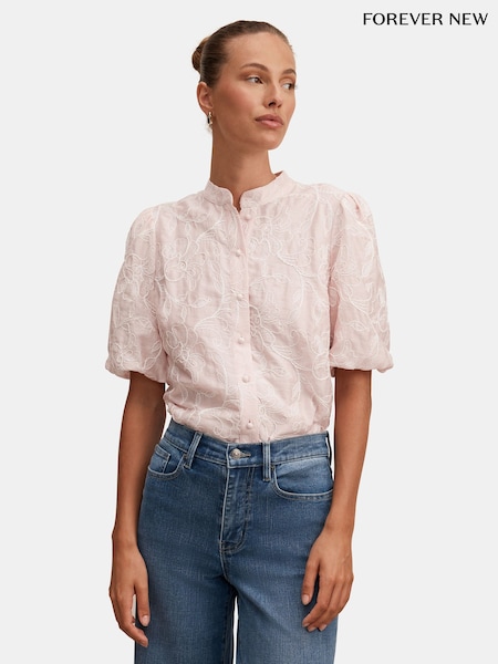 Forever New Pink Arlow Embroidered Blouse
