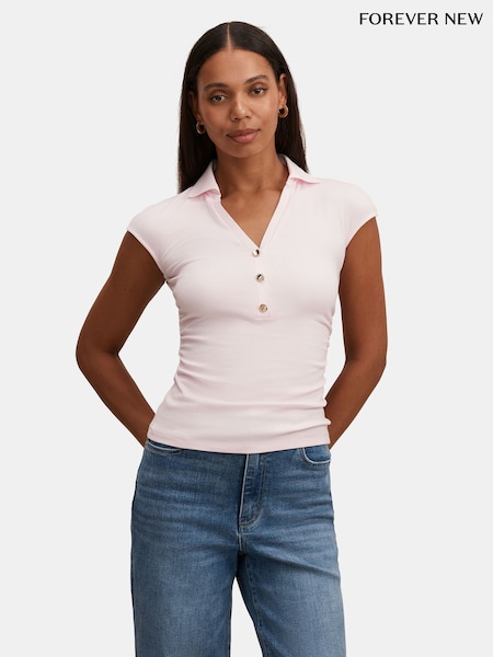 Forever New Pink Winnie Extended Shoulder Polo Top