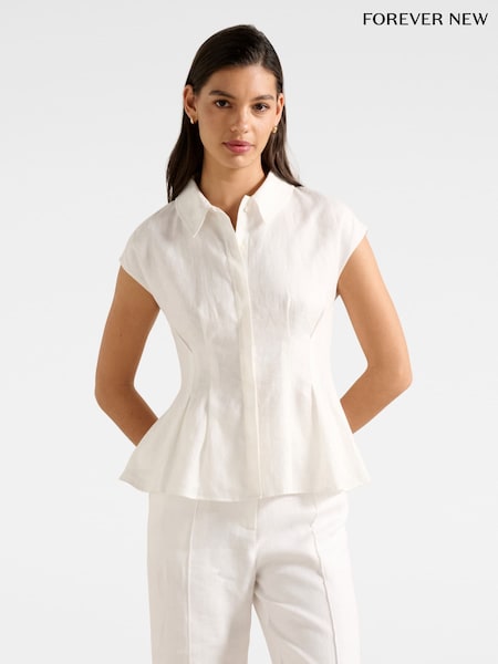 Forever New Yellow Georgina Bubble Hem Top Contains Linen