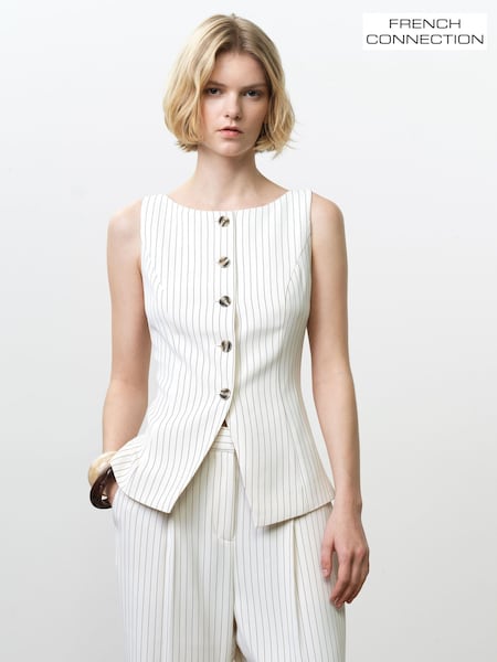 French Connection White Vinnie Pinstripe Waistcoat
