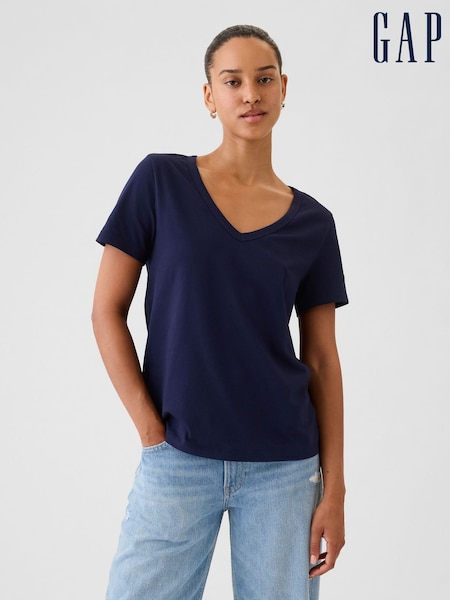 Gap Navy Cotton VintageSoft V Neck T-Shirt