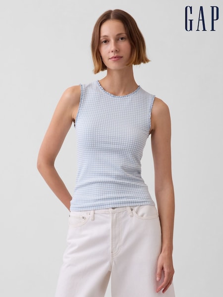 Gap Blue Gingham Pointelle Shell Vest