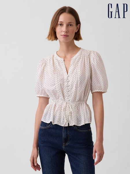 Gap White Linen-Blend Lace-Hem Crop Shell Top