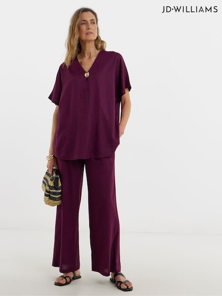 JD Williams Purple Linen Mix Metal Trim Tunic Top
