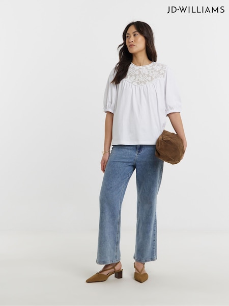 JD Williams White Lace Trim Button Through Prairie Blouse